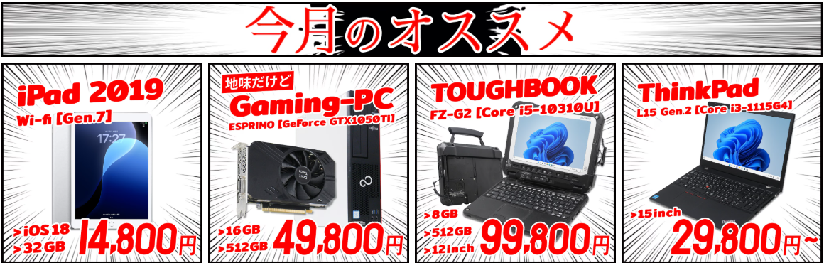 中古パソコンをできるだけ安く、安心して購入していただける専門店です。